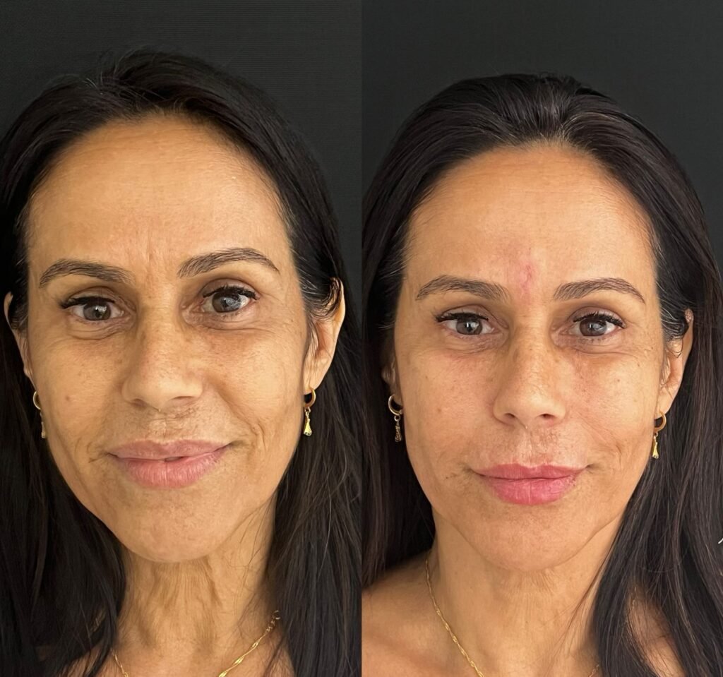 Além de reduzir essas linhas, o procedimento reestrutura o contorno facial, trazendo harmonia e equilíbrio ao rosto.